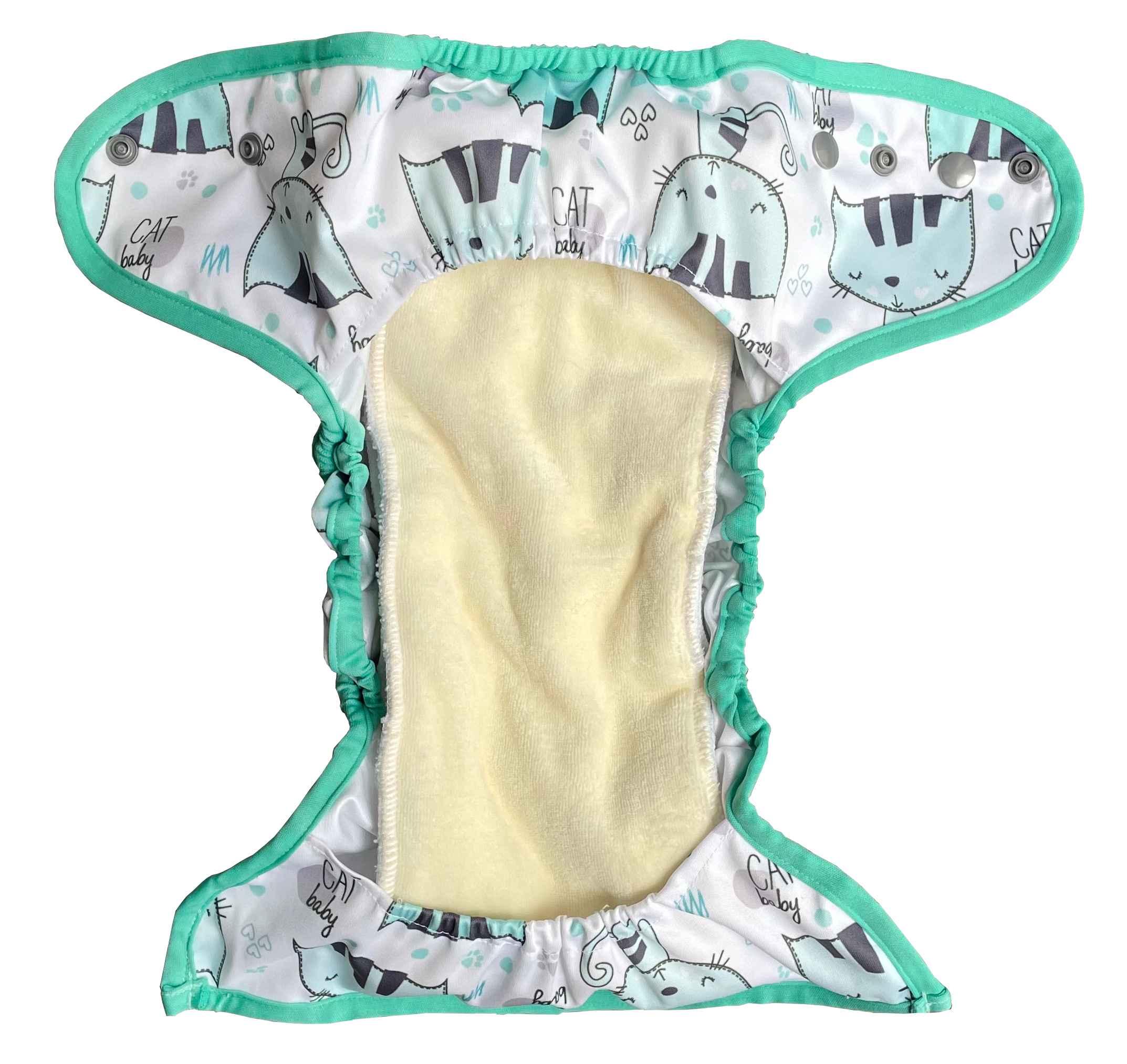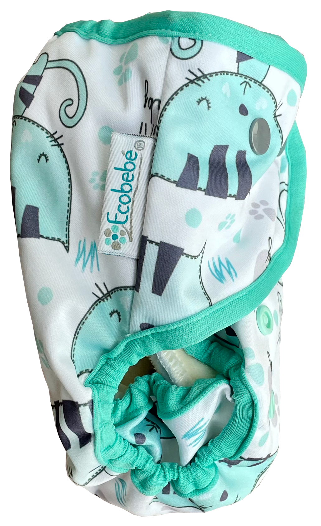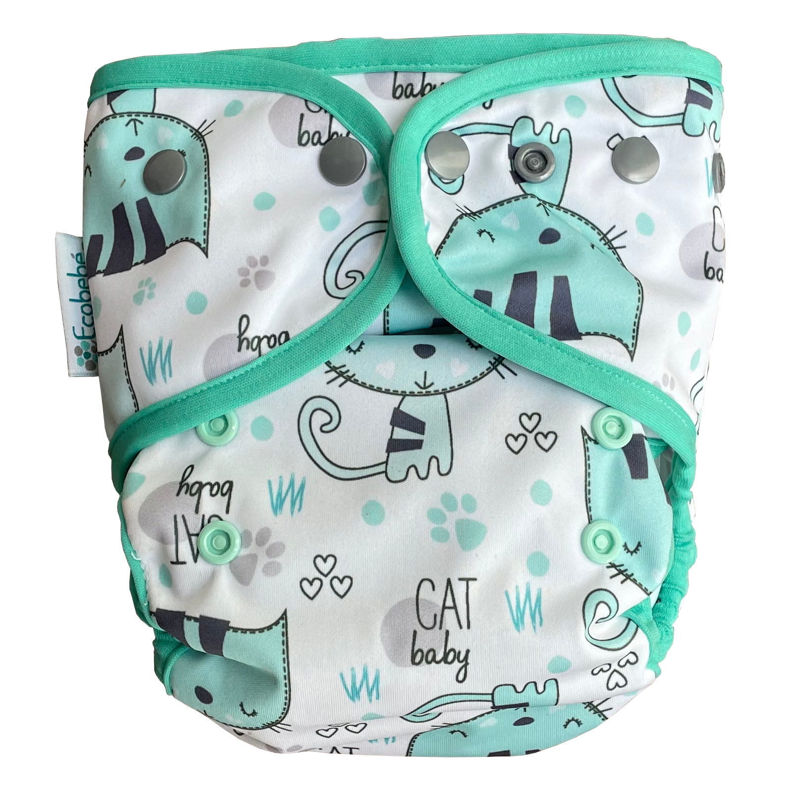 El pañal Ecobebé es un pañal con un sistema todo en 2, es decir que consta de una cubierta impermeable y un absorbente que se coloca sobre la cubierta.