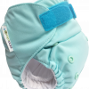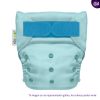 Cada pañal trae unos broches frontales para ajustarlo a las diferentes tallas (tiro) y se ajustan a la cintura por medio de velcro , incluso puede colocarse una bandita sobre otra.